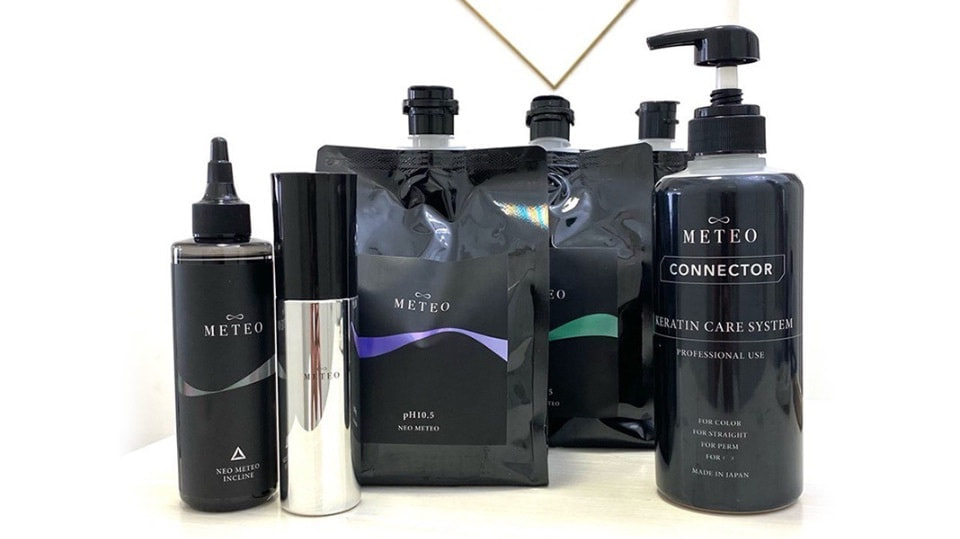 酸熱成分で作られたトリートメント剤で、ツヤとイミノ結合による補修と補強効果で持続率があり、イミノ結合はこのメテオトリートメントの最後の工程で行うブローやアイロンの脱水効果により髪の毛の中に新しい結合を作り出す効果がありその効果によってハリコシを与えてくれて健康的な髪の毛の状態へ導き、トリートメントの効果を長続きさせてくれる特徴があります。カラーやパーマ、ストレートでツヤやサラサラ感を与え、手触りの良い髪へ導きます。
